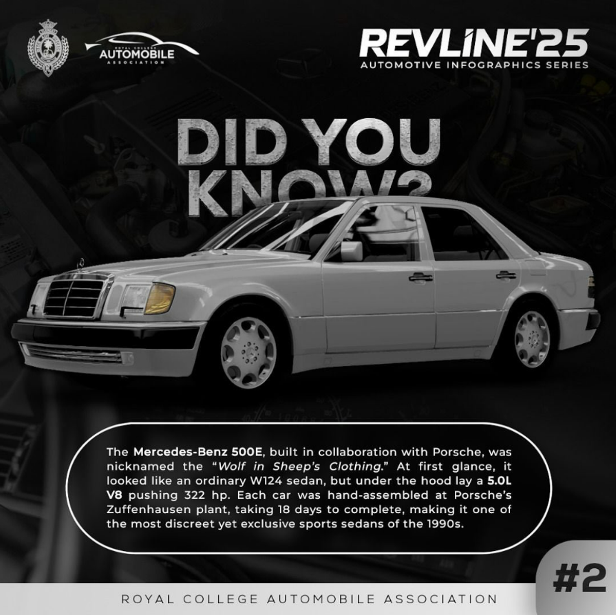 Nicknamed the “Wolf in Sheep’s Clothing,” the 500E looked like any other W124 sedan—but appearances deceived. Beneath the hood sat a 5.0L V8 with 322 hp, capable of sports-car levels of performance. Hand-assembled in collaboration with Porsche at Zuffenhausen, each car took 18 days to build, making it one of the most discreet yet exclusive sports sedans of the 1990s.